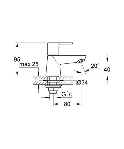 Der ½” Brauseschlauchanschluss ist standard, passend für alle handelsüblichen Schläuche, und nach unten gerichtet. Die Armatur ist auch für einen Durchlauferhitzer geeignet.