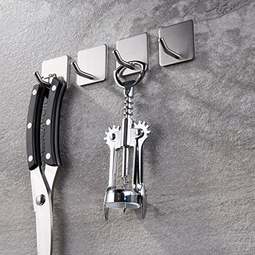 Haken Selbstklebende Handtuchhaken ohne Bohren Wandhaken 4 Stk Klebehaken Edelstahl für Küche und Bad, von Ruicer