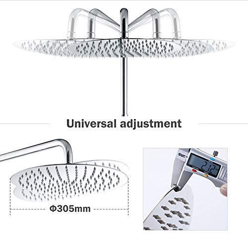 Größe Handbrause mit einem Durchmesser von 12 cm, aus ABS-Plastik. Regenbrause: 300mm, aus 304 Edelstahl, gute Qualität, keine Notwendigkeit, den Körper beim Duschen zu bewegen, ±15° drehbar, geeignet für verschiedene Benutzer