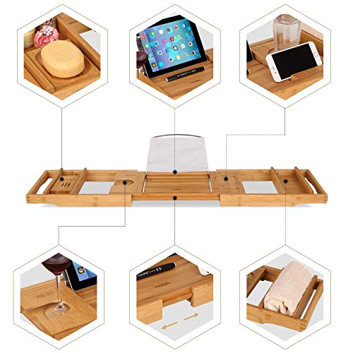 -Teleskopregal beseht aus natürlichem Bambus, dadurch kann diese Badewannenablage keinen Schmutz auf Ihr Badewanne hinterlassen.