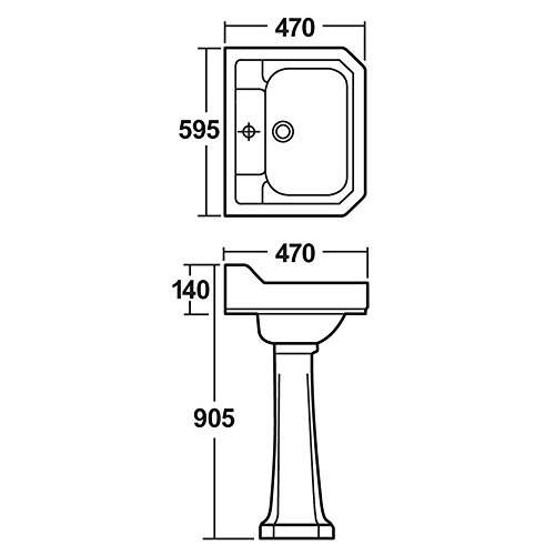 Hudson Reed Waschbecken Carlton – Traditionelles Standwaschbecken mit Spritzschutz für 1-Loch-Armaturen 600 mm