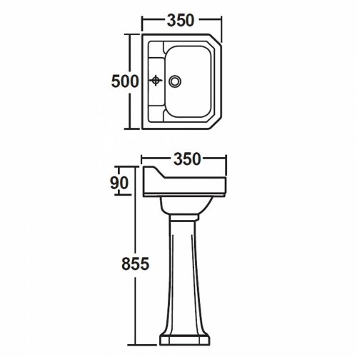 Hudson Reed Waschbecken Richmond – Traditionelles Standwaschbecken mit Spritzschutz für 1-Loch-Armaturen 500 mm