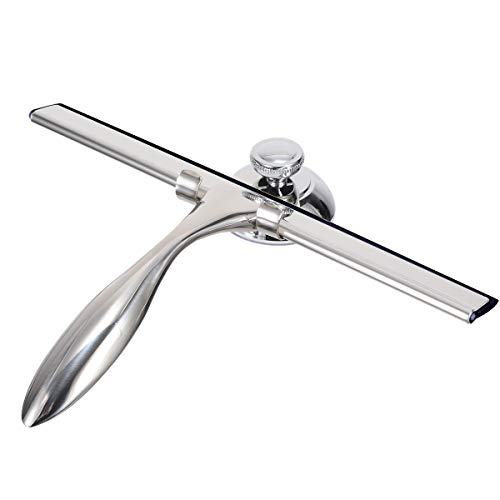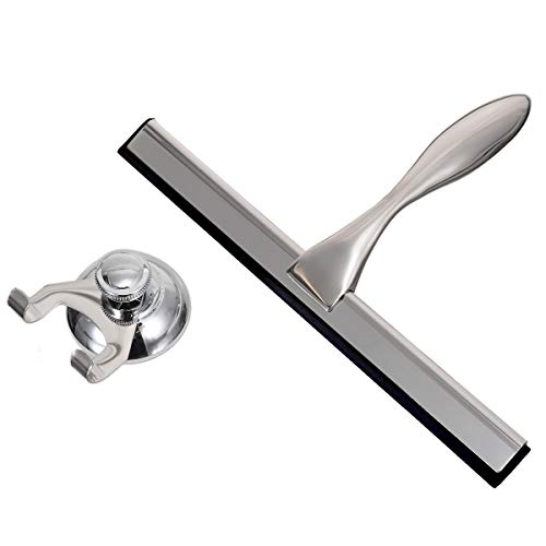Huntfgold Duschwischer Duschabzieher Scheibenwischer aus Edelstahl Dusche Bad Spiegel Gummi Wischer mit Saughaken für Badezimmer Fenster