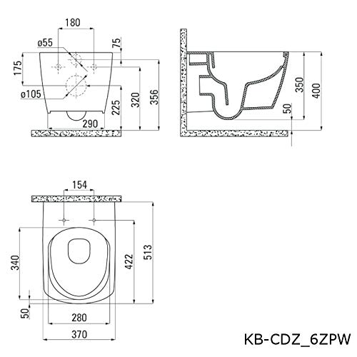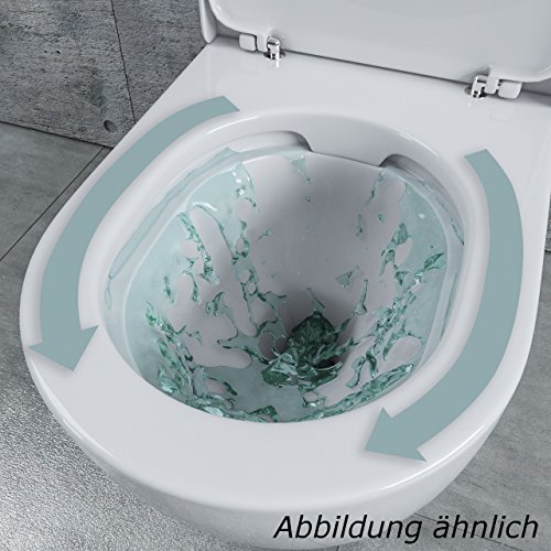 KERABAD Design Keramik Wand Hänge WC Toilette Randlos inkl. WC Sitz aus Duroplast mit Absenkautomatik Spülrandlos KB…