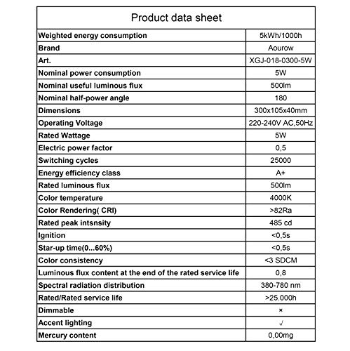 【Energieeinsparung LED Spiegellampe Badezimmer】Die Spiegelleuchte verfügt über ein fest verbautes 5W LED Modul und kann als Spiegel-, Schrank- oder Bildbeleuchtung verwendet werden, das spiegellampe nicht dimmbar ist.