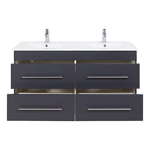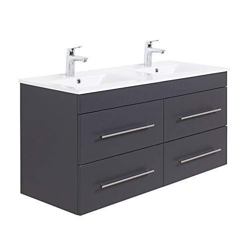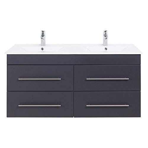 Lomadox 120cm Doppelwaschbecken Keramik mit Unterschrank anthrazit