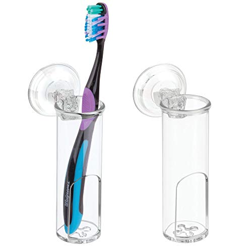 mDesign 2er-Set Zahnbürstenhalter Saugnapf fürs Badezimmer – Zahnbürstenhalterung & Rasiererhalter aus Kunststoff – für…