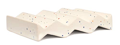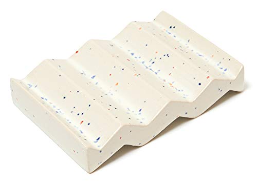 Durch die an Gebirgsketten erinnernde Form von Rocky M. liegt das Seifenstück nur an wenigen Punkten auf und kann so bestmöglich trocknen. Die Seifenschale Rocky M. ist handgefertigt aus Keramik, genau genommen aus langlebigem, hoch gebranntem Steinzeug – ein echtes Luxusprodukt. Unregelmäßigkeiten bei Glasur und Ton sind für Keramik charakteristisch. Die Seifenschale wird in den Christophorus-Werkstätten in Fürstenwalde produziert. Die Christophorus-Werkstätten sind eine anerkannte Werkstatt für behinderte Menschen. Die über 420 Beschäftigten, können wegen Art und Schwere ihrer Behinderung nicht oder noch nicht auf dem allgemeinen Arbeitsmarkt tätig sein. Mit Rocky M. erwerben Sie nicht nur eine funktionale Seifenschale, sondern leisten zugleich einen ökologischen und sozialen Beitrag zur Nachhaltigkeit. Auch als Schwammablage oder für Schmuck dient das hochwertige Design. So wird nicht nur das Waschbecken, sondern auch die Spüle und die Ablage zum Hingucker. Erhältlich in Weiß, Blau, Gelb, Hell-Grün, Dunkel-Grün, Petrol, Türkis, Schwarz, Rosa, Rot und Ägäisblau.