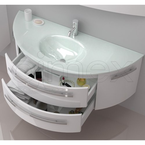 – Farbe: Weiß Hochglanz sowie Waschbeckenglas im hellen Minzgrünton