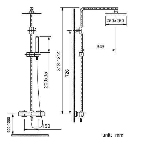 Die Höhe der Duschstange kann verstellen(Höhe:818-1240 mm), die Handbrausehalterung kann auch auf unterschiedliche Höhen eingestellt werden