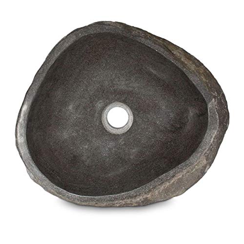 Oriental Galerie Top Serie Flussstein Handwaschbecken Naturstein Waschschale Stein Findling Natur Grau ca.40-45 cm
