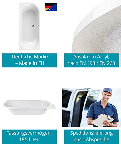 Calmwaters® Rechteck-Badewanne 180×80 cm, Acrylwanne Honest, Duo-Badewanne für zwei Personen, Maße 180 x 80 cm…