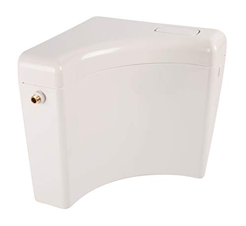 Weißer Look: Der platzsparende Eckspülkasten lässt sich mit den abgerundeten Kanten und der weißen Farbe in viele Badezimmer integrieren.