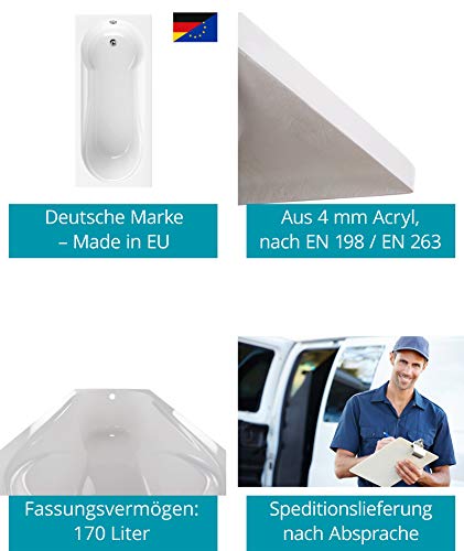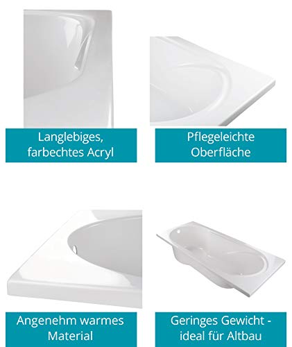 LANGLEBIG & ROBUST: Das hochwertige Material der Acrylwanne ist 4 mm dick und entspricht damit Markenqualität. Es zeichnet sich durch seine hohe Lebensdauer und das geringe Eigengewicht aus. So ist die Wanne auch für den Altbau geeignet.