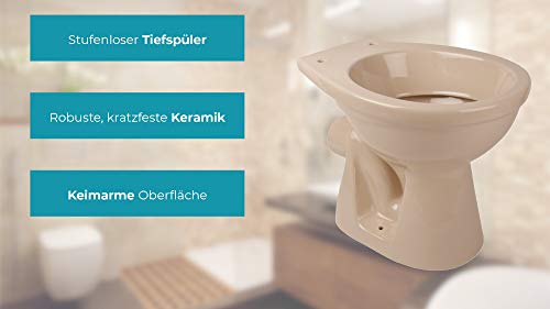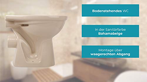 Retro Farbe: Eine runde Form bestimmt das Design des Stand-WCs in Beige-Bahamabeige. Die Toilette passt prima zu weiteren Keramiken in dem Farbton.