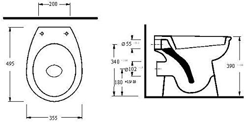 Für Wandablauf: Aufgrund des waagerechten Abgangs benötigt die Standtoilette einen Wandabgang zur bodenstehenden Montage.