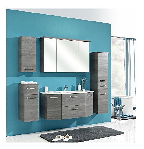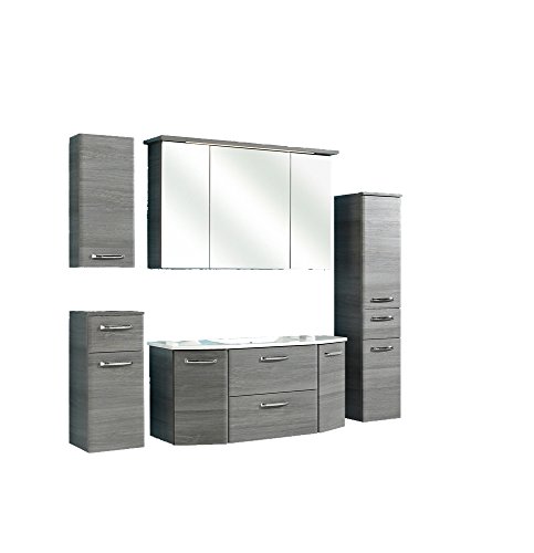 Sehr schönes Badmöbel-Set der Serie ALIKA von Pelipal – 6-teilig mit Front und Korpus in Graphit Struktur quer – Türdämpfung!