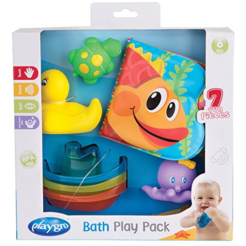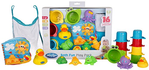 Lieferumfang: 1x Playgro Badespielzeug Geschenkset, 16-teilig, Maße: 35,5x27x10,5cm (HxBxT), Material: Wasserfestes Badebuch: EVA, Stapelbecher: Polypropylene, Aufbewahrungsnetz: Polyester, Saugnapf: PVC, Badespritztiere: PVC, Farbtinte, Polypropylene, Art.-Nr.: 40115