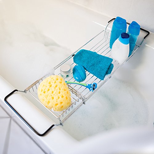 Mit der Wannenauflage haben Sie auch beim Baden alles Wichtige stets griffbereit. Egal ob Seife, Öl oder Rasierapparat – auf der großzügigen Ablagefläche findet alles seinen Platz. Durch die verstellbare Breite passt die Badewannenablage garantiert auf jede Wanne.