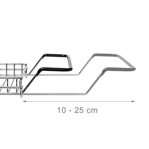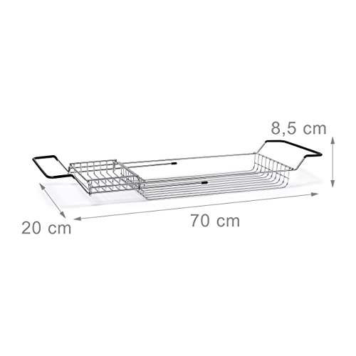 Relaxdays ausziehbare Badewannenablage, rutschfestes Badewannentablett aus verchromtem Eisen, HxBxT: 8,5x70x20cm, silber