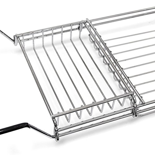 Die Badewannenbrücke besteht aus verchromtem Eisen und überzeugt mit ihrem zeitlosen Metallic Look. Dank der mit Gummi überzogenen Träger liegt sie rutschfest auf dem Wannenrand, während Sie sich entspannen können.