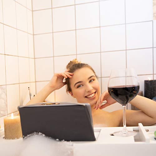 Entspannung pur: Dank der Bambus Badewannenablage wird die Zeit in der Badewanne noch angenehmer
