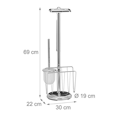Relaxdays, Toilettenbürste, Bürstenhalter, Magazinhalter, HBT 69 x 30 x 22 cm, Silber WC Garnitur, Toilettenpapierhalter…