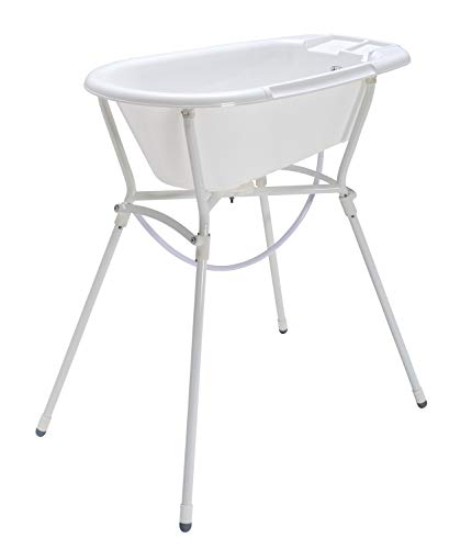 Ergonomische Form mit integrierter Sitzmulde, Seitliche Tragegriffe für einfaches Heben und Tragen, Passend für Wannenständer von Rotho Babydesign (Art.-Nr. 20450 oder 20451), Einfaches und schnelles Entleeren dank Ablaufstöpsel