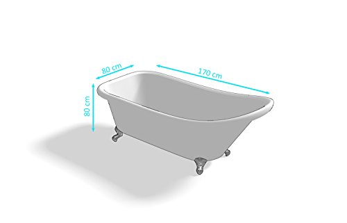 Badewanne Emma aus weißen Sanitäracryl, mit Metallfüßen & Pop-Up-Ablaufgarnitur, 170 x 80 x 80 cm