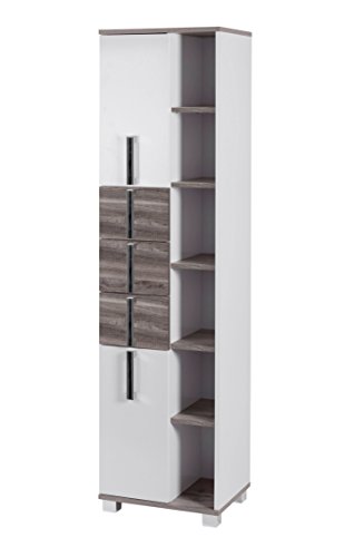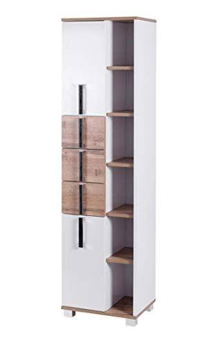 Schildmeyer Hochschrank Luca 701153, weiß glanz/Eiche Landhaus, 41,9/32,0/163,7 cm