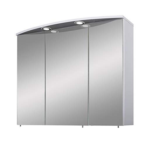 Spiegelschrank mit 3 Türen und 6 höhenverstellbaren Einlegeböden aus Glas