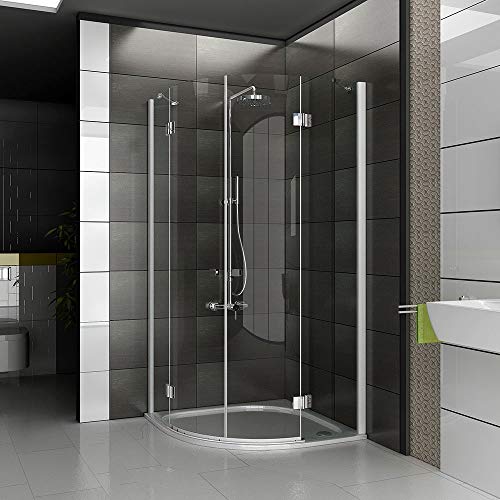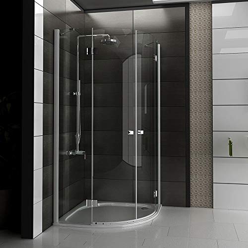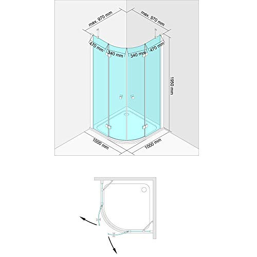 ✔️ HOCHWERTIG UND MODERN – Easy Clean Viertelkreis Duschkabine mit zwei Türen und zwei Festteilen aus Sicherheitsglas (ESG) | Die Duschkabine ist TÜV Rheinland geprüft | Wandanschlußprofile lassen sich bis zu 20 mm verstellen | Mit hochwertigen Messingscharnieren | Wanneneinbaumaß: ca. 970-990 x 970-990 mm