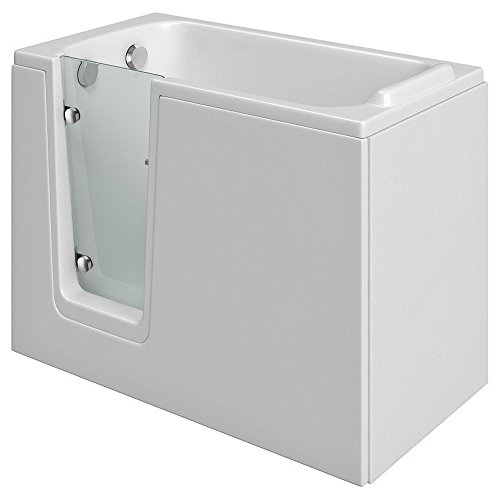 DEEP SOAK Sitz-Badewanne mit Tür, Seniorenbadewanne 121x65x94,5cm (LxBxT) Hier kaufen Sie eine hochwertige Badewanne mit Einstiegstür / Seniorenbadewanne. Die Badewanne ist insbesondere für Senioren und pflegebedürftige Menschen geeignet. Durch den sehr niedrigen Eintritt wird gerade Senioren und pflegebedürftigen Menschen ein entspannendes, erholsames und wohltuendes Badevergnügen ermöglicht. Und hier die Details/Lieferumfang im einzelnen: Badewanne 121x65cm (Länge x Breite) auf stabilem Fußgestell,Farbe weiß verstärkter Wannenboden + Glasfaserarmierung für hohe Stabilität Höhe der Badewanne mit Wannenschürze: 94,5 cm Tür aus 8mm starkem Einscheibensicherheitsglas mit Glasbeschichtung Tür mit manuellem Sicherheits-Schliess-System Griff, Schloss und Scharniere aus hochwertigem polierten Edelstahl Spezielles Ablaufsystem für 40% schnelleres Entleeren der Badewanne, Front- und Seitenschürze aus weißem Acryl