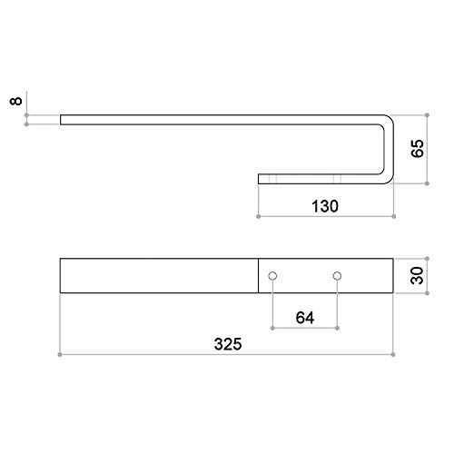 Länge: 325 mm / Breite: 65 mm / Höhe: 30 mm / Materialstärke: 8 mm / Bohrlochabstand (BA): 64 mm