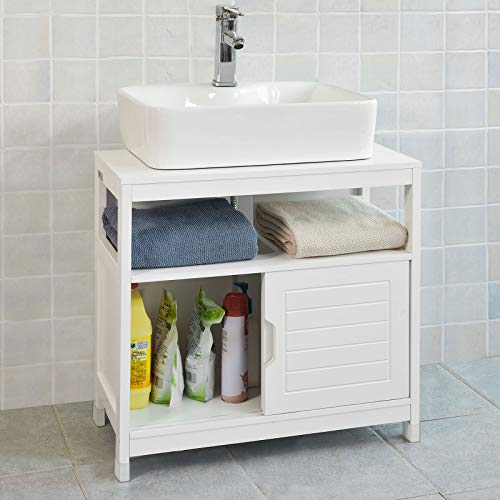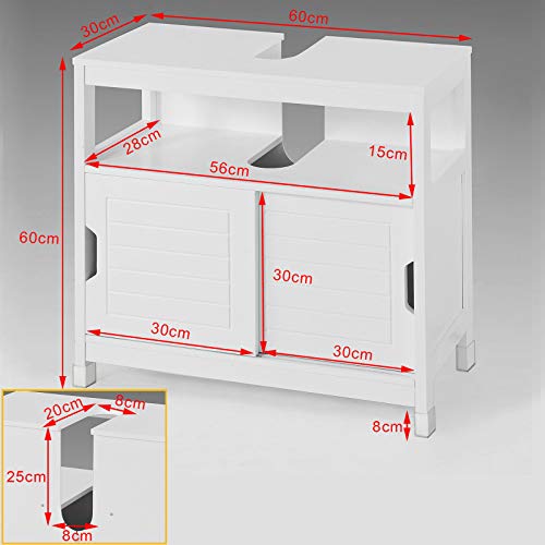SoBuy® FRG128-W Waschbeckenunterschrank Badmöbel Badschrank mit Fußpolster Waschtisch Unterschrank weiß