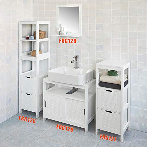 Bad Möbel Set 4-teilig: Waschbeckenunterschrank(FRG128-W) Spiegel(FRG129-W) Badkommode (FRG127-W) Hochschrank(FRG126-W)