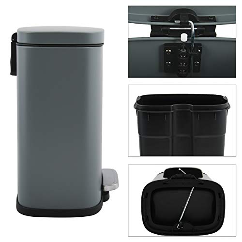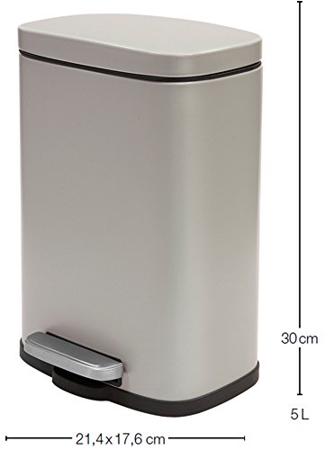 Egal ob im Bad als Kosmetikeimer oder in der Küche für kleinere Abfälle – dieser Abfalleimer fügt sich dank seinem schlichten und zugleich edlen Edelstahl Design ideal in jeden Raum ein. Er verfügt über ein Fassungsvermögen von ca. 5 Litern. Der Kunststoffeinsatz mit praktischem Tragegriff sorgt für leichtes Leeren und Reinigen des Eimers. Das Fußpedal ermöglicht ein müheloses Öffnen des Mülleimers ohne sich bücken zu müssen. Die Absenkautomatik verhindert lautes zuknallen.