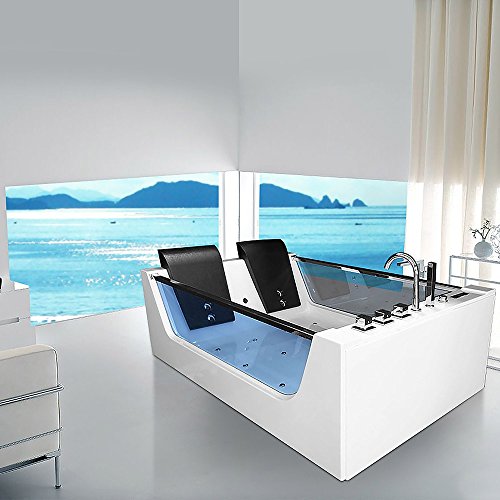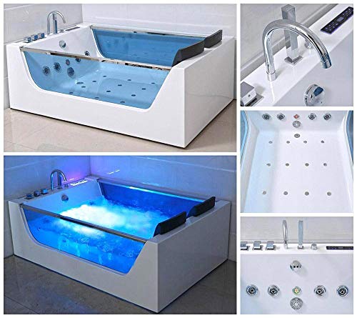 Länge: 180 cm, Höhe: 60 cm , Breite: 120 cm; Dieser traumhafte Whirlpool ist mit wunderschönen Sichtfenstern aus ESG Sicherheitsglas rechts und links veredelt, dadurch ist er freistehend im Raum oder mit einer kurzen Seite an einer Wand aufstellbar
