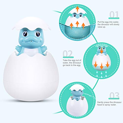 Multi-Funktions Spray Wasserbad Spielzeug: Tauchen Sie es in das Wasser, der Dinosaurier wird langsam aus der Eierschale schweben. Das Wasser fließt natürlich aus dem unteren Loch, dann versteckt sich der Dinosaurier in der Eierschale. Injizieren Sie Wasser, während Sie es zusammendrücken, und drücken Sie leicht auf den Kopf, um Wasser zu sprühen.