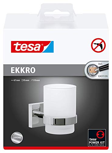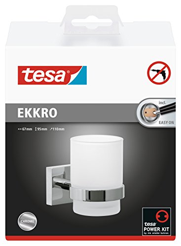 Tesa ekkro Zahnbürstenhalter (verchromt, satiniertes Glas, inkl. Klebelösung, hohe Haltekraft (bis 6kg), 95mm x 67mm x… günstig online kaufen