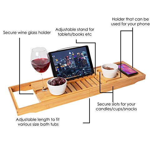 TRIXES Premium Bambus Badewannen-Ablage Bade-Caddy – Ausziehbare luxuriöse Heim-Entspannungs-Spa-Erfahrung für…