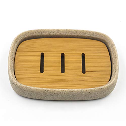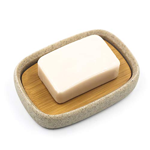 Ulable Kunstharz-Seifenschale, Seifenschale, Seifenspender, Seifenspüle, Sandsteinoptik, Bambus-Chip inklusive (Beige)