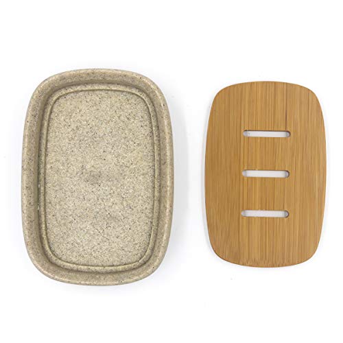 Dieser Seifenhalter hat zwei Ebenen, die Oberseite ist ein Stück Bambus-Chip, abnehmbar, leicht zu montieren oder zu zerlegen. Perfekte Größe bei 5,1 cm lang und 3,6 cm breit und 1 cm hoch.