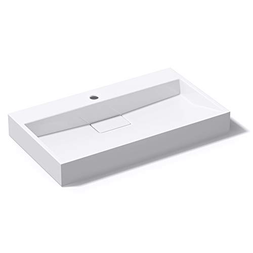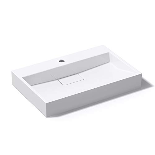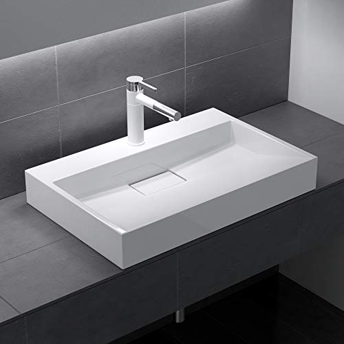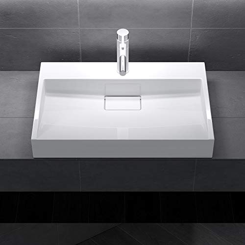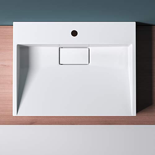 Waschbecken Col19 Aufsatz-Waschbecken Hänge-Waschtisch Gussmarmor Rechteckig Waschplatz 1 Armaturenloch Breite: 50cm
