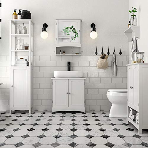 VASAGLE Spiegelschrank, Wandschrank verstellbarem Einlegeboden, Medizinschrank im Landhausstil, Badschrank aus Holz…