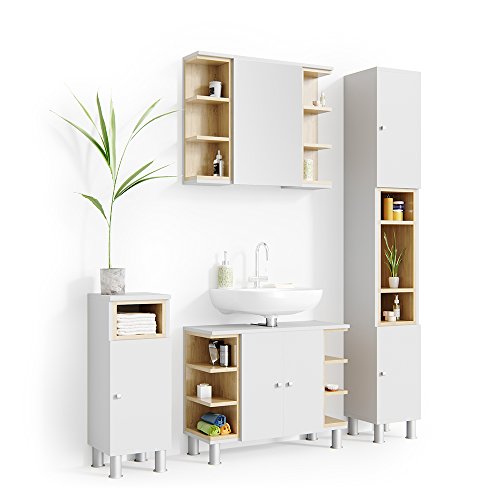 Vicco Badmöbel Set AQUIS Weiß Eiche Spiegel Waschtisch Unterschrank Badschrank