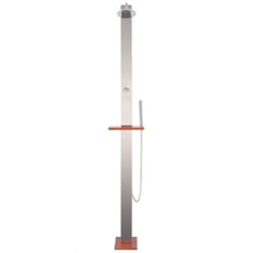 Mit dieser Außendusche können Sie vor oder nach dem Schwimmen im Pool eine erfrischende Dusche in Ihrem Garten genießen. Die Dusche ist sowohl mit fixierter oberer Kopfbrause als auch mit Handbrause ausgestattet. Die Gartendusche verfügt über eine Holzablage und einen Drehknopf zum bequemen Umschalten zwischen den zwei Duschköpfen. Ein 1,5 m langer Zulaufschlauch für die Handbrause ist im Lieferumfang auch enthalten. Die Dusche ist aus gebürstetem Edelstahl gefertigt und verfügt über eine Holzbasis, so dass sie äußerst langlebig ist. Diese Außendusche ist mit ihrer schlichten, jedoch stilvollen Optik eine hervorragende Bereicherung für jeden Garten- bzw. Poolbereich. Der Zusammenbau ist kinderleicht. Die Lieferung umfasst 2 Duschen.