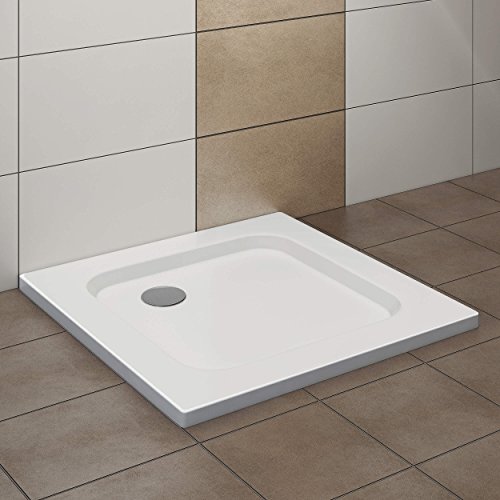 VILSTEIN Duschwanne 70 x 70 x 5 cm, sehr Flach, Duschtasse mit Gefälle, Sanitär-Acryl, Glasfaser verstärkte Wanne, DIN…