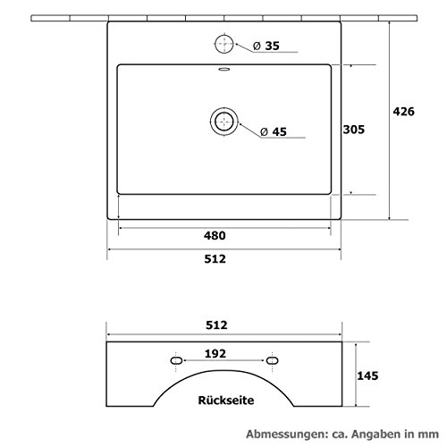 Die Rückseite des Waschbeckens ist nicht zusätzlich lasiert. Bedenken Sie bitte, dass im Lieferumfang nur das Waschbecken enthalten ist, Armatur oder Ablaufgarnitur sowie Montagematerial sind nicht im Lieferumfang enthalten.