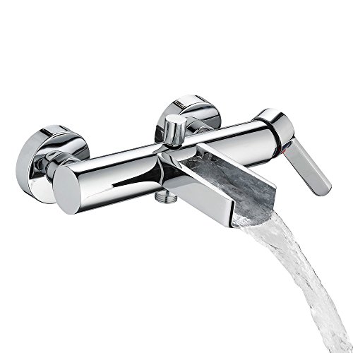 Verchromte Messing Wannenfüll- und Brausearmatur mit einem Wasserfallauslauf